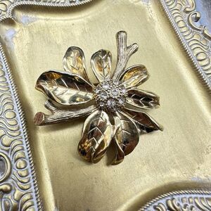 Vintage MONET Gold Rhinestone POINSETTIA FLOWER Brooch Pave Crystal