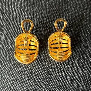 A pair of vintage MONET gold tone luxury open omega clip-on earrings.