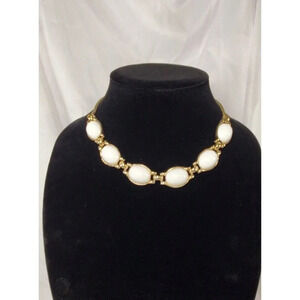Vintage MONET Necklace Mid Century White Cabochons Bezel Set Necklace MCM Signed