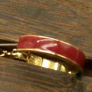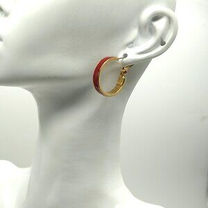 Vintage MONET Red Enamel Inlay Hoop Earrings Gold-Tone
