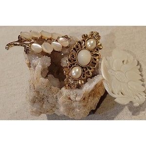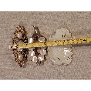 Vintage MOP Mother of Pearl pins Brooch lot of 3 Carved MCM & Victorian Revival