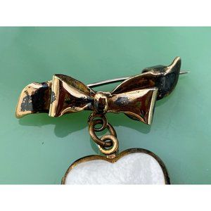 Vintage MOP Shell Sterling 10K GF Heart Locket Brooch