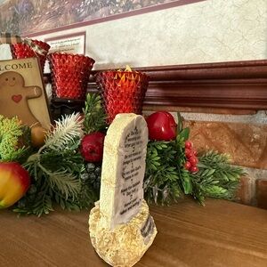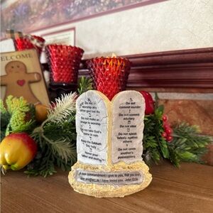 Elegant tabletop decor featuring the Ten Commandments in a gold and gray design. Perfect for adding a spiritual touch to your home accents.