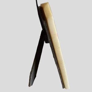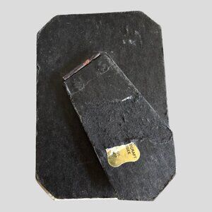The back of the frame is a little used looking but in perfect working order. The front has a beautiful saying scripted in black and a blue 3D Lily design. This is not marble or ceramic but feels and looks like a vintage ivory marble. It is a very Vintage looking piece.