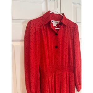 Vintage MS. CHÁUS Red Polka Dot Midi Long Sleeve 80s Dress Small