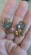 Gorgeous gold screw back style earrings with four clear prong set rhinestones with stunning emerald cut aqua stone.