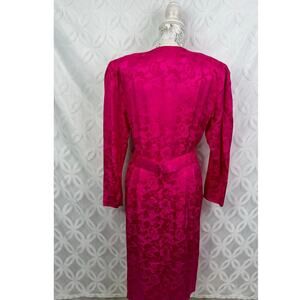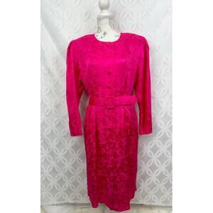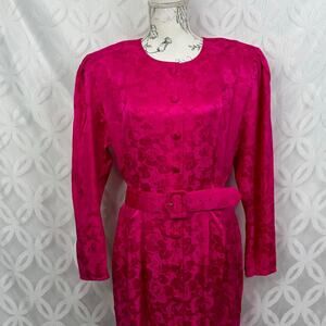Vintage MS. for Misho 80s Silk Pink Floral Button Belted Midi Dress Size 16
