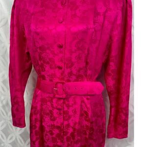 Vintage MS. for Misho 80s Silk Pink Floral Button Belted Midi Dress with Shoulder pads - Excellent condition, see all pictures!