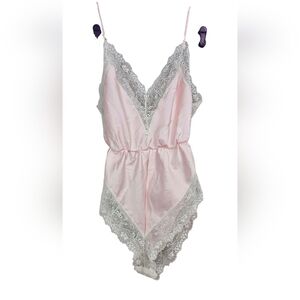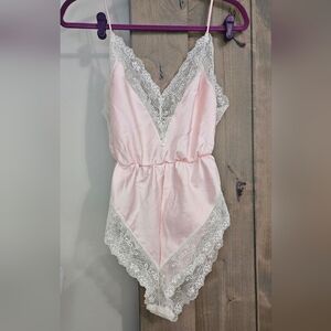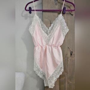 Vintage MS.LESLEE Lace Satin Teddy Romper n Light Pink/ivory. Size M