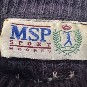 Vintage MSP Moores Sport men's sweater in size large, featuring a classic pullover style. This multicolor sweater is perfect for adding retro flair to your wardrobe. Made for regular sizing, this cozy sweater is a must-have for any man looking to stay stylish and comfortable during the colder months. You can add this unique piece to your collection today and make sure to stand out in style.
