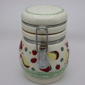 Vintage MSRF Inc. Cream Ceramic Fruit Canister Jar with Hinged Lid sealing jam jar