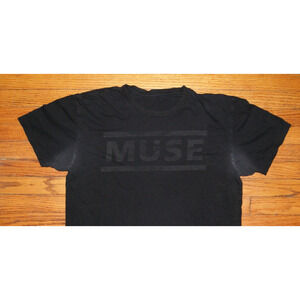 Vintage MUSE Band Tee Black Mens Medium TShirt Distressed Black Spell Out Stains