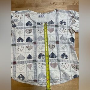 Vintage M.W.C. Patchwork Heart Button Down Short Sleeve Shirt Round Neck Medium