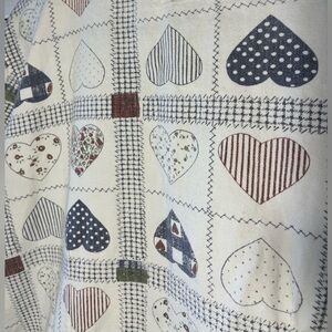 Patchwork, hearts, vintage, retro, farm, farmhouse, farmcore, cottagecore, grannycore, grandma, grandmacore, light, spring, summer, casual, nostalgia, nostalgic, feminine, femme, girly, cute, boho, rustic, shabby chic, maximalist, country, rural, square dancing. B62.