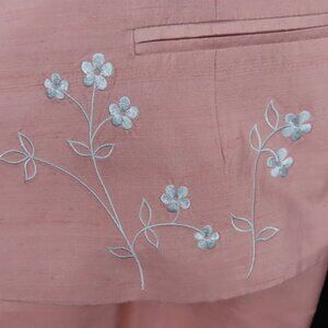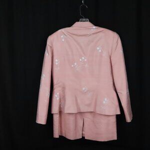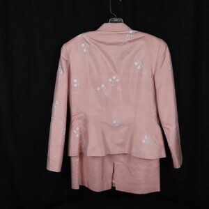 Vintage M.X.I. Peach Pink Embroidered Flower Silk Suit Sz. 10