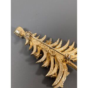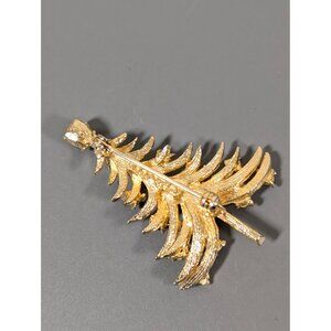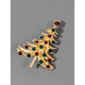 Add a touch of vintage charm to your holiday attire with this stunning MYLU Christmas Tree brooch, featuring red and green rhinestones on a gold-tone setting.