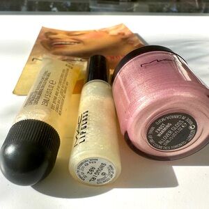 Vintage MAC Snowgirl ❄️ Collection. Snowgirl Sparkly appointment card, Lipglass tube in Freezefrost, Lipglass in Snowgirl A82, and Allover Gloss in Frost Warming. Lipglosses were used. Tube has discoloration due to age. Allover gloss was not used, but I did open it. I do not have the box for it anymore. This was my favorite collection. This is for collectors. People have reached out to me inquiring about used pieces I still have so I’m posting in case there’s someone out there that may want to add this to their collection.