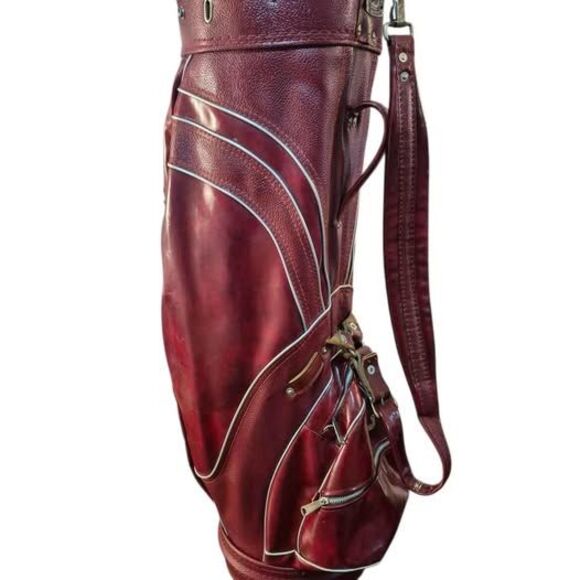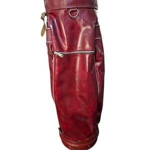 Vintage MacGregor Deep Wine Red Leather Golf Cart Bag w/ Carry Strap & Rain Hood