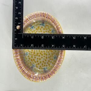 mackenziechilds summerfrock terracotta spring floral cottagecore pastel artisan pottery serveware 1990s collectible pink yellow bowl