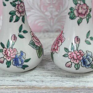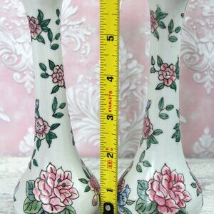 Vintage Macau Porcelain Bud Vases: 2 Hand-Painted Floral Chinoiserie