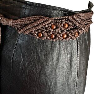 Live the summer of love. This natural jute handmade cord belt has dark wooden beads and a chevron knotted design. Could be tied in front of back. Total length is 47 inches. Belt is 1.5 inches wide.