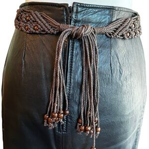 Vintage Macramé Brown Beaded Rope Belt