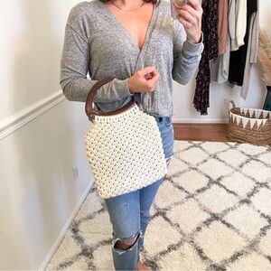 style tags: vintage, 70s, 80s, handmade, boho, bohemian, ulla johnson style, cult gia style, retro, hippie, sack, handle bag, neutral, vacation, summer, chic.