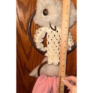 Vintage Macrame Owl Towel Holder With Pink Towel & Lace Trim