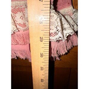 • Pink towel with lace trim