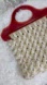 Keywords: macrame purse, vintage handbag, retro bag, knotted purse, beige handbag, cream purse, plastic handle bag, bohemian bag, festival purse, unique handbag