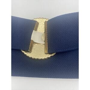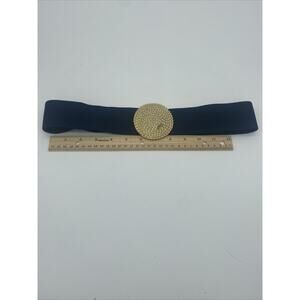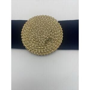 Vintage Macy's Wide Elastic Waist Belt Navy Blue Gold Stippled Medallion
