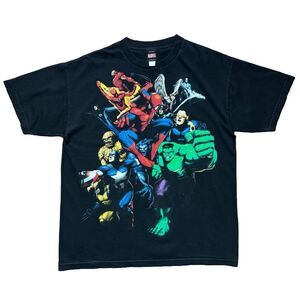 Vintage Mad Engine Marvel X-Men Avengers Hulk Spiderman TShirt Black Mens Large