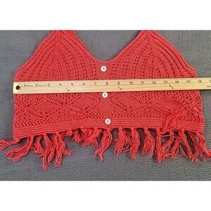 Vintage Madden NYC Crochet Fringe Crop Top – Red Medium Boho Retro Festival