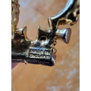 Vintage Made In England Rhinestone Crown Broach Pin Gold Tone