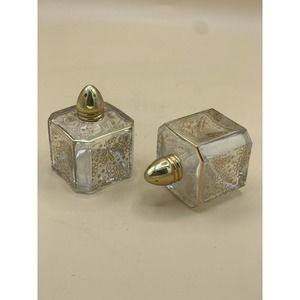 Vintage Made In France Irving Rice Crystal & Gold Floral Salt & Pepper Shakers
