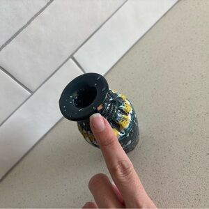 Vintage Made In Italy Bud Vase Mid Century Modern 6 inches Teal Yellow Speckled
