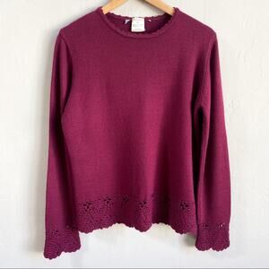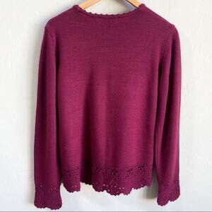 Vintage Made In Italy Merano Wool Maroon Crochet Lace Sweater