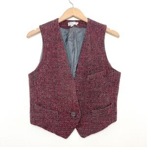 Vintage Made In Japan Dark Academia Tweed Burgundy Wool Vest Sz 10