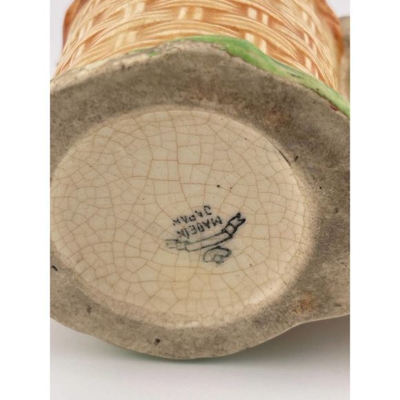 Vintage Made In Japan Porcelain Bunny Rabbit Woven Basket Small Planter