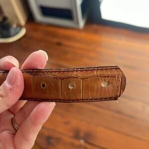 Vintage Made In The USA gator Embossed Cowhide Leather belt; has been cut short; SEE PICS