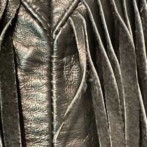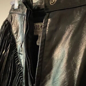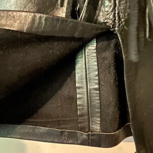 Vintage Made In USA 100% Leather Fringe Zipper Snap Closure Black Skirt