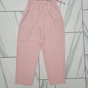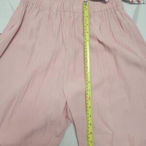 Beautiful light pink made in the USA dress pants. No brand. Elastic waist measures about 13.5" lay flat but does have quite a bit of stretch.