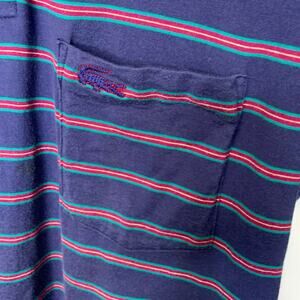 Vintage Made Japan IZOD Blue Striped Polo Shirt Red Green Stripes Sz Small
