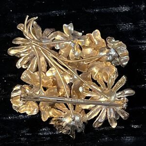 Vintage Made in Austria Aurora Borealis AB Rhinestone Gold Tone Floral Brooch