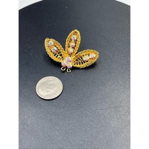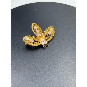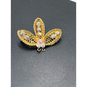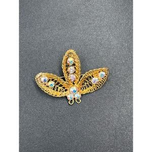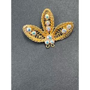 It is made of brushed gold mesh or coils of brushed gold wire with Iridescent Ab rhinestones.