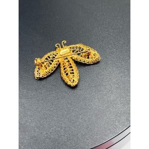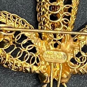 Vintage Made in Austria Brushed Gold Coiled Metal Brooch AB Austrian Rhinestones