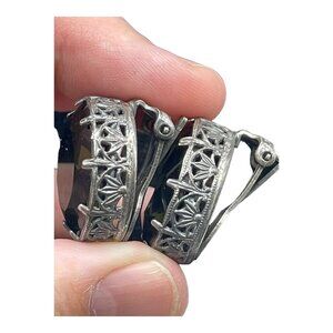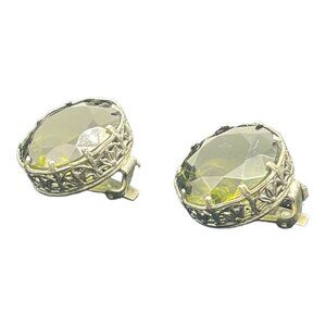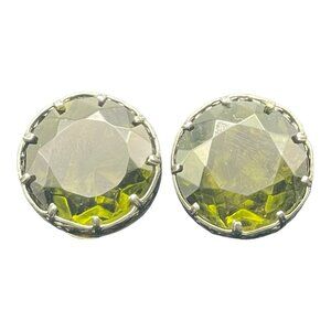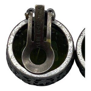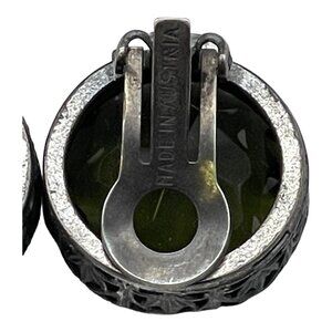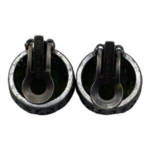 Vintage Made in Austria Dark Green Headlight Silver-tone Clip on Earrings HTF