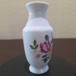 Vintage Made in China Miniature Flower Transfer Design White Vase