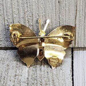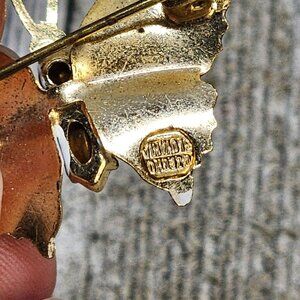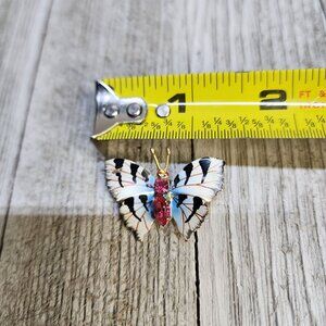 Add a touch of elegance with this Vintage Made in Czechoslovakia Enamel Butterfly Brooch Pin, adorned with tiny pink rhinestones. A unique multi-color accessory for any collection.