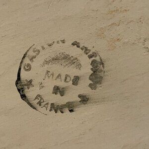 The marking on the bottom was smudged during manufacture--we think the maker is Gaston Antoine but can not be 100% certain. Covered oval box